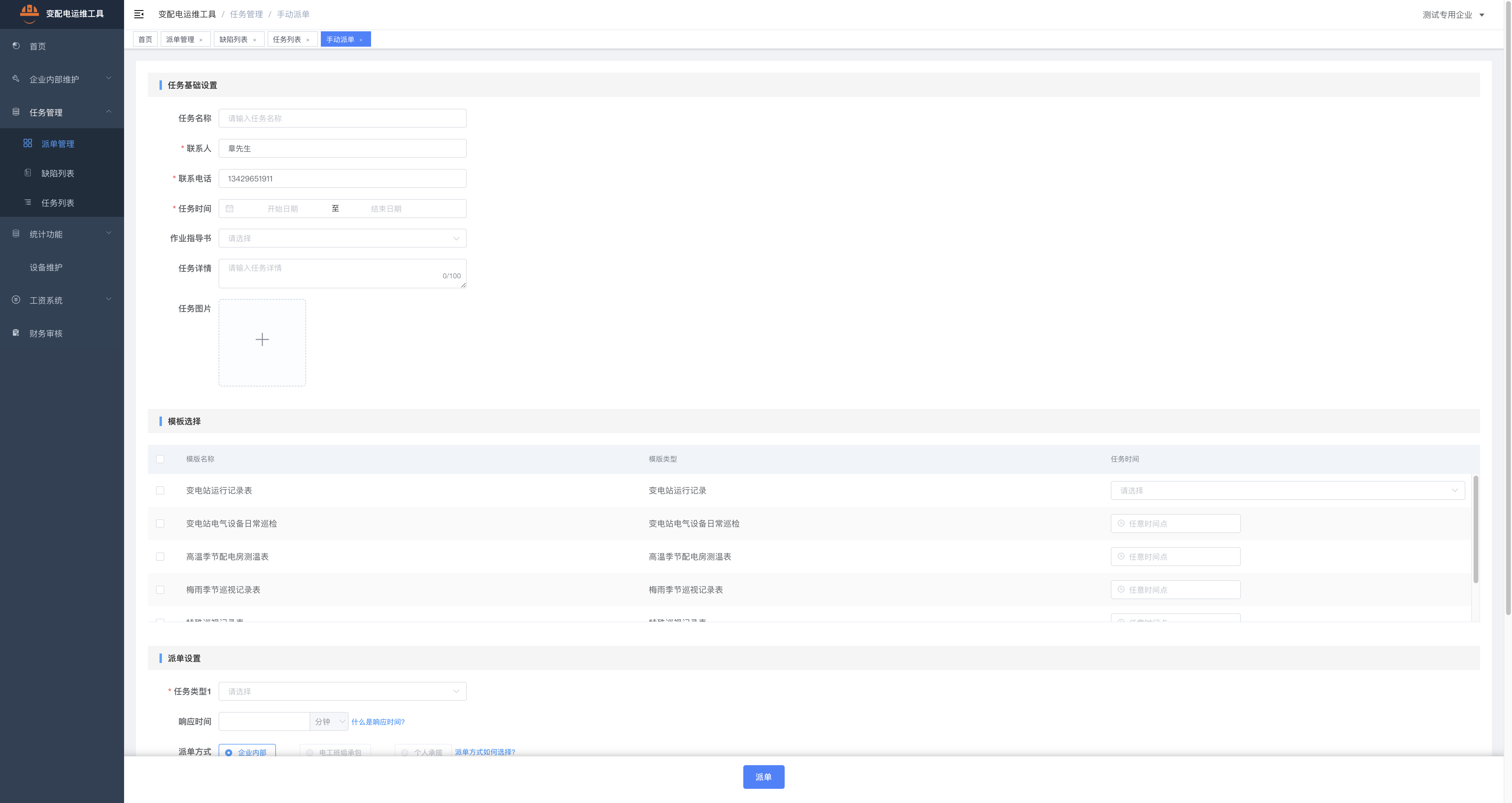 通過(guò)移動(dòng)端APP或巡檢管理小程序派發(fā)巡檢、維保、售后等工單,電工也可自行根據巡檢計劃直接填寫(xiě)電子巡檢單,完成后一鍵分享給管理者。