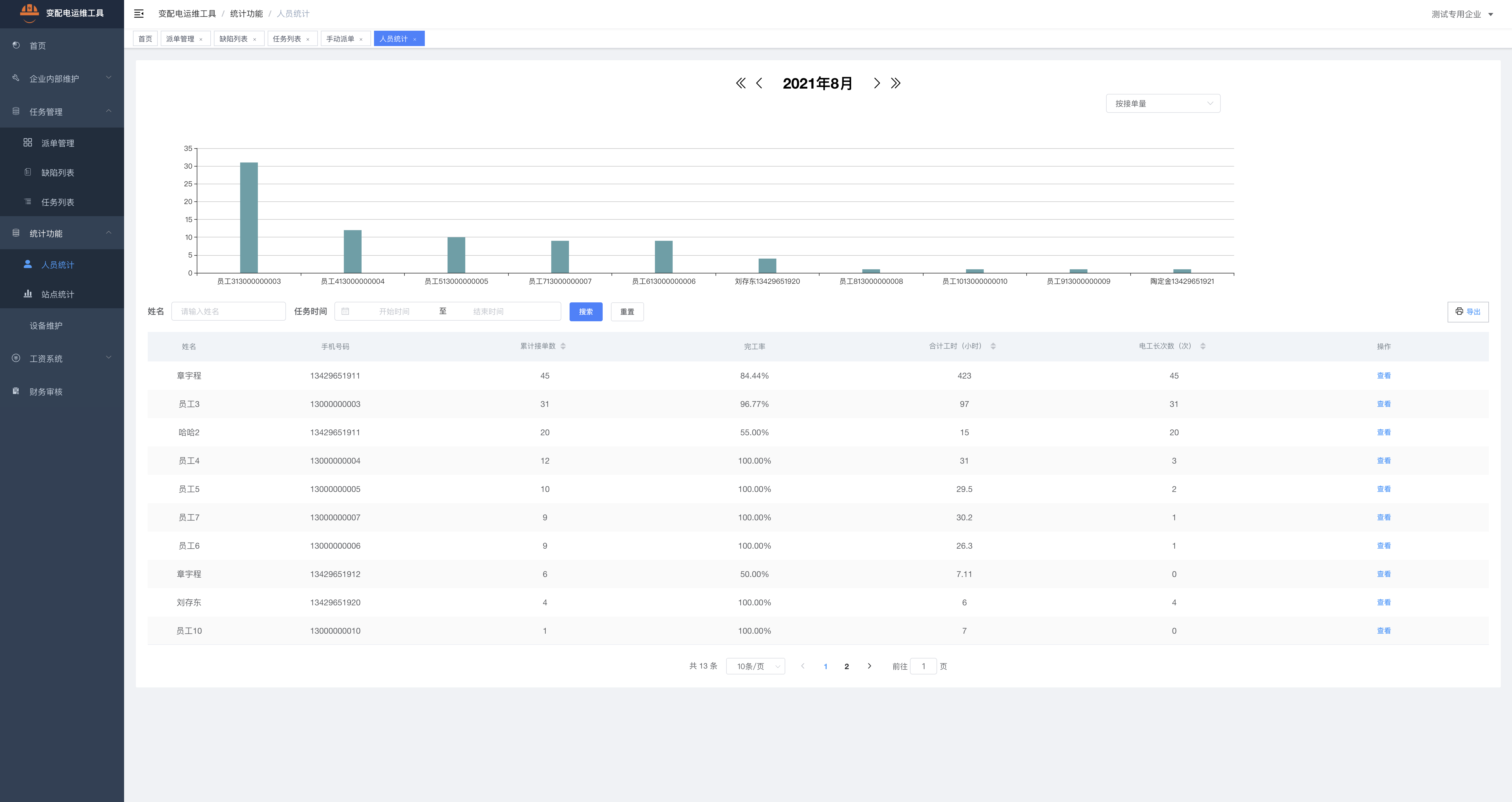 人員接單統計